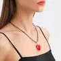 Red Crystal Heart Pendant Necklace with Black Cord Fashion Jewellery pendant necklace chain for women girls Love stylish Neck Chain | Heart Locket | Modern Design | Birthday Gift Valentine| Aesthetic Jewellery | Accessories