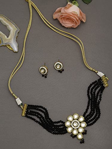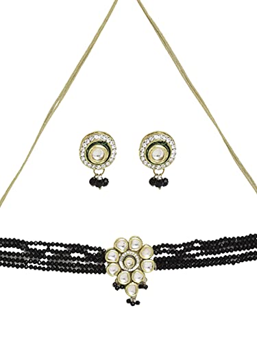 Ruby Raang Women's Mixed Metal Artificial Kundan Jewellery - Traditional Jewellery Set for Women (Black)