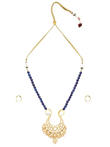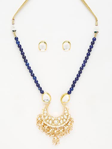 Ruby Raang Women's Mixed Metal Artificial Kundan Jewellery - Traditional Jewellery Set for Women (Blue)