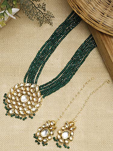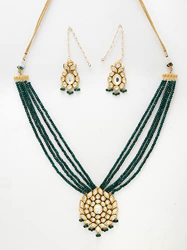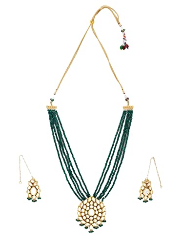 Ruby Raang Women's Mixed Metal Artificial Kundan Jewellery - Traditional Jewellery Set for Women (Green)