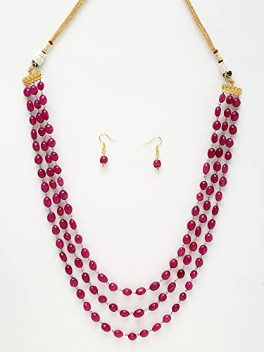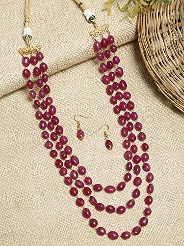 Ruby Raang Women's Mixed Metal Artificial Kundan Jewellery - Traditional Jewellery Set for Women (Maroon)