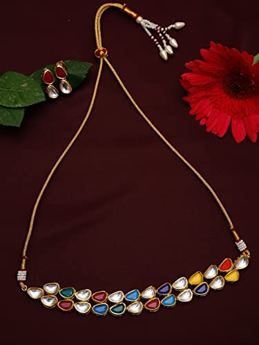 Ruby Raang Women's Mixed Metal Artificial Kundan Jewellery - Traditional Jewellery Set for Women (Multicolor)