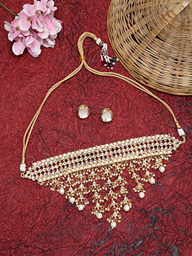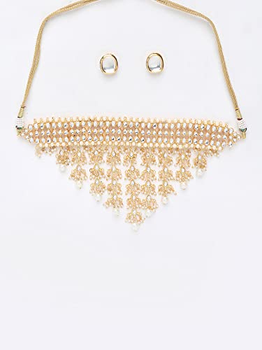 Ruby Raang Women's Mixed Metal Artificial Kundan Jewellery - Traditional Jewellery Set for Women (White)