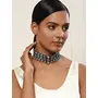 Ruby Raang Women's Mixed Metal Artificial Kundan Necklaces - Traditional Jewellery Set for Women (Black)
