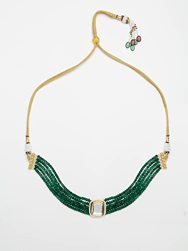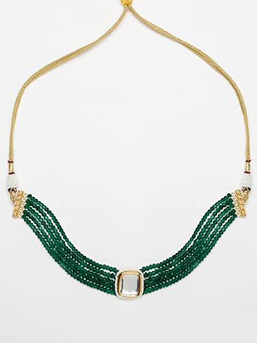 Ruby Raang Women's Mixed Metal Artificial Kundan Necklaces - Traditional Jewellery Set for Women (Green)