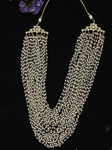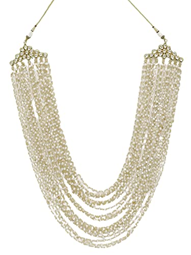Ruby Raang Women's Mixed Metal Artificial Kundan Necklaces - Traditional Jewellery Set for Women (White)