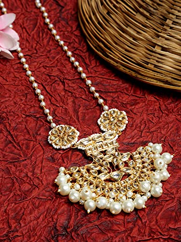 Ruby Raang Women's Mixed Metal Artificial Kundan Necklaces - Traditional Jewellery Set for Women (White)