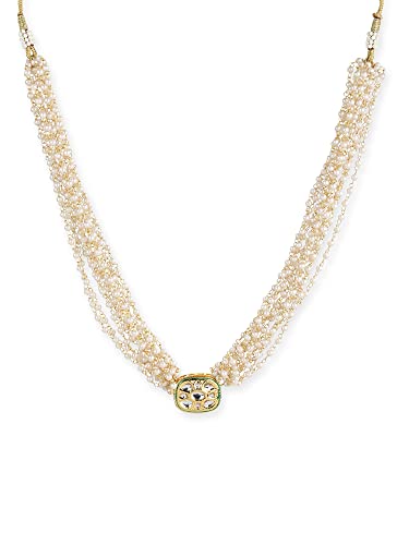 Ruby Raang Women's Mixed Metal Artificial Kundan Necklaces - Traditional Jewellery Set for Women (White)