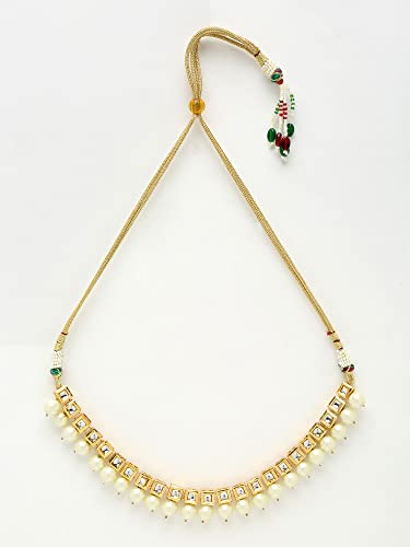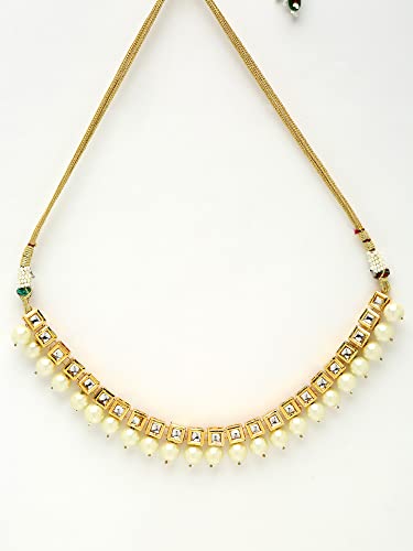 Ruby Raang Women's Mixed Metal Artificial Kundan Necklaces - Traditional Jewellery Set for Women (White)