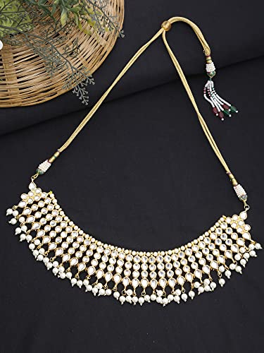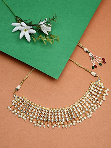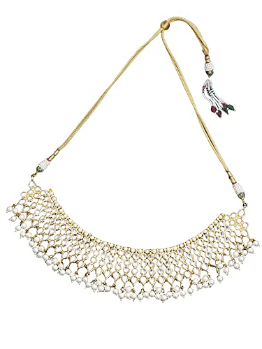Ruby Raang Women's Mixed Metal Artificial Kundan Necklaces - Traditional Jewellery Set for Women (White)