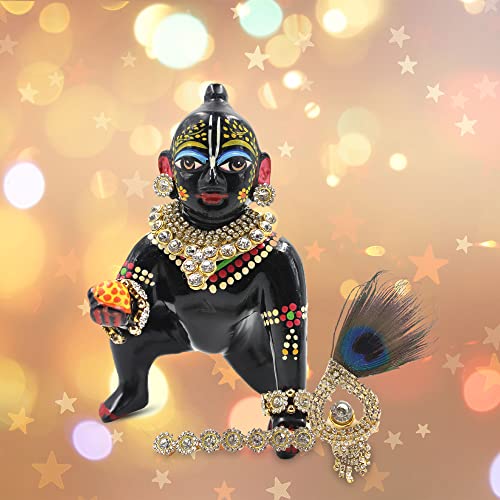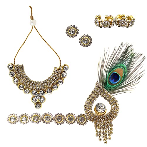 Shri Krishnamayi Kanhaji Jewellery Combo Set is made from high-quality material and with good finishing. This combo set is a perfect fit to 6 Number Lu Gopal Ji. This set includes 1 Necklace 1 Mukut 2 Kadha/haanth phool beautiful Bansoori/ te & Earings just for our Bal Gopal. However our premium traditional and classy jewellery is designed by our karigars who has expertise in designing jewellery. This Jewellery Combo set can be fit and suited with every dress and enhances the look of our beautiful poshaks that we made with love for our kanhaji. Every Jewellery of ours has been made from Imitation Gems Pure & Shiny Stones just to change the look of our idol/ bal gopal. Let's choose the best for our Kanhaji Balgopal Gopalji Lu Gopal Ji Thakurji Little Krishna Gopala from the best collection of Shri Krishnamayi and change their look as per the occasion. Serve your Ladoo Gopal with these amazing stylish & designer Jewellery.