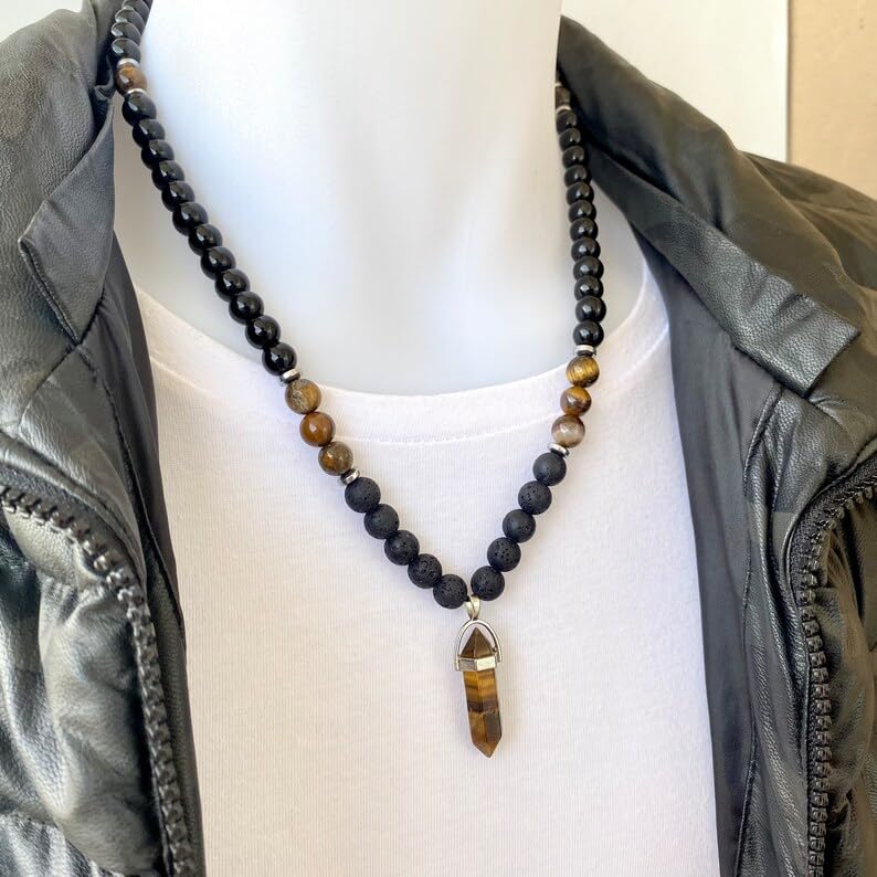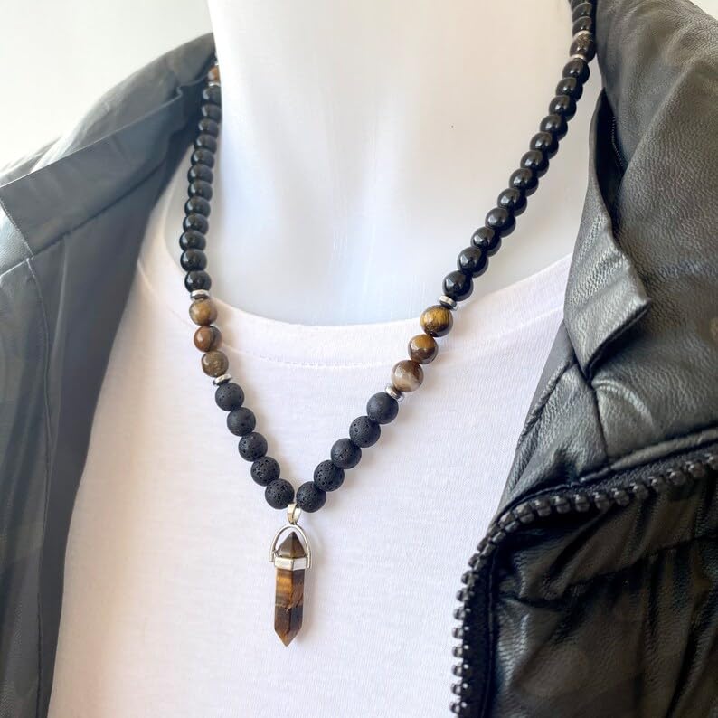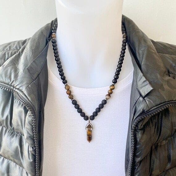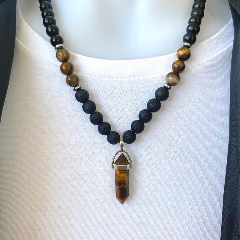 Sukhad Tiger Eye Necklace Men - Tiger's Eye Necklace - When you buy this necklace I will have sent you your bracelet as a gift