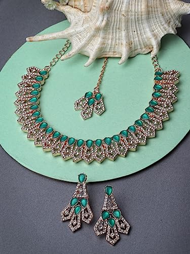The Admirable Fashionable Choker Necklace Set is a show-stopper! The craftsmanship is top-notch, and the red-green Kundan stones shine beautifully against the skin. I receive compliments every time I wear it.