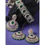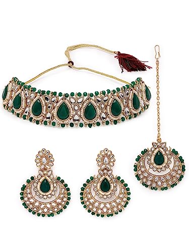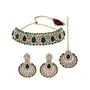 I am in love with this choker necklace set. The drop-shaped white Kundan stones and beadwork create a stunning visual appeal, making it an incredible accessory for any occasion.