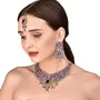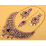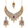HomeFashionNecklaceTouchstone Charming Studded Diamond Look Fine Filigree Rhinestones Heavy Bridal Jewelry Hasli Necklace Set in Antique Gold Tone for Women