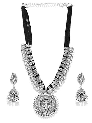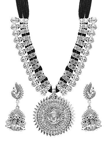 From the house of YouBella these Traditional necklaces add a hint of raw ethnic beauty to any look. Representing a classic fusion of exquisite craftsmanship and feminine elegance this set will definitely be a treasured inclusion in every woman's jewelery collection. The gold finish further ensures a long-lasting shine.!!