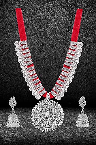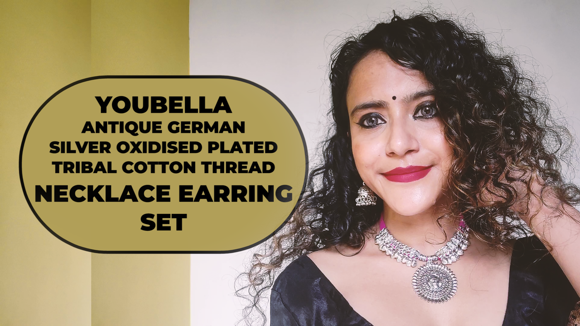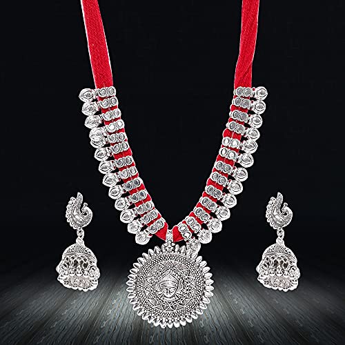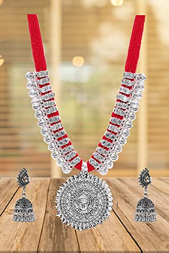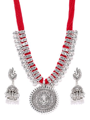 YouBella Jewellery sets for women Antique German Silver Oxidised Plated Tribal Cotton Thread Jewellery Necklace Earring Set for Women & Girls