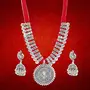 From the house of YouBella these Traditional necklaces add a hint of raw ethnic beauty to any look. Representing a classic fusion of exquisite craftsmanship and feminine elegance this set will definitely be a treasured inclusion in every woman's jewelery collection. The gold finish further ensures a long-lasting shine.!!