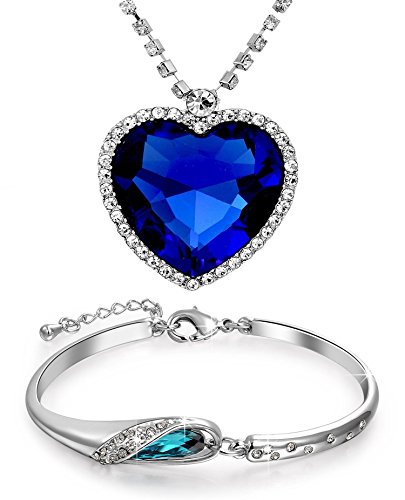 YouBella Valentine Gifts Jewellery Valentine Collection Crystal Combo of Love Heart Pendant Necklace Set and Bangle Bracelet for Girls and Women