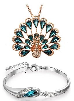 Valentine Gifts : YouBella Jewellery Valentine Collection Crystal Combo of Peacock Pendant Necklace Set and Bangle Bracelet for Girls and Women