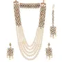 What You Get: Total 4 Items. 1 gorgeous looking white-colour Kundan-based long necklace 1 Pair Of Matching & short Earrings 1 Maang Tikka & 1 stylish Choker High-Quality American Diamonds & superior-quality Gold Plating For Long Lasting Finish with Hand Crafted Design For Contemporary Stylish Trendy & Stunning Look. Unique-shaped & matching sets / combos especially offered to our prestigious shoppers.