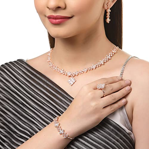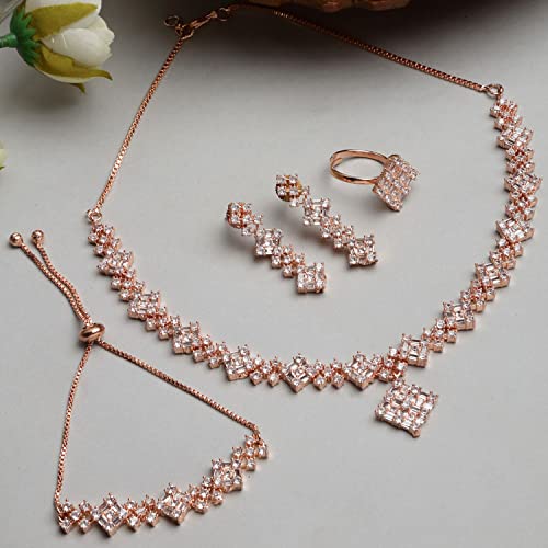Simple yet with full elegance daily wear which defines a modern living woman. The best combo of 4 - Covers neck wrist ears and a finger.; Stylish and Trendy American Diamond Pendant combo from the house of Zeneme. Department Name: Womens; Gem Type: Cubic Zirconia