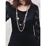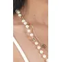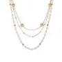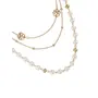 Women's Long Chain Necklace Pearl Necklace Multilayer Gold-Plated Floral Chain Necklace and White