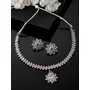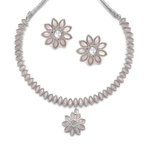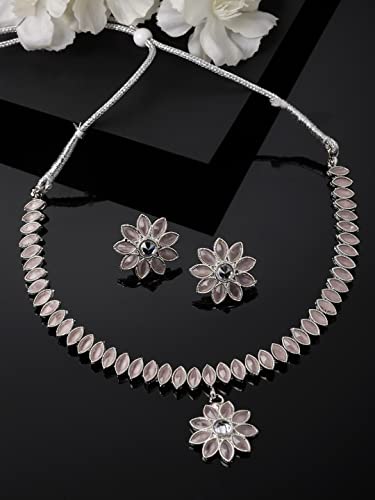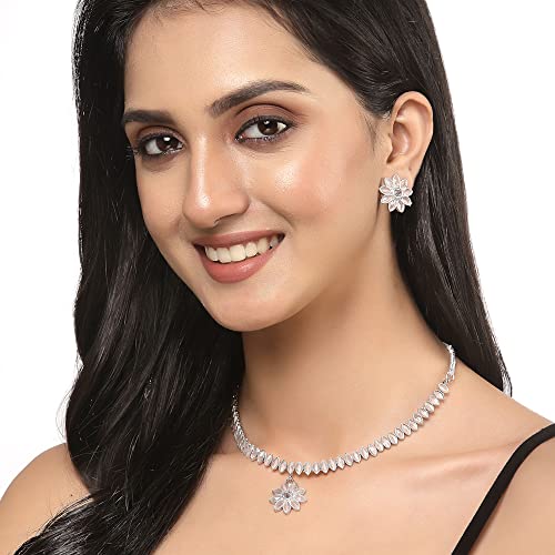 What You Get:- This jewellery set consists of a necklace and a pair of earrings. Oxidised Silver-Plated Necklace has Flower & Leaf design American Diamond studded detail secured with a Drawstring closure. A pair of matching Drop Earrings each secured with a Post and Back Closure. LUXURY GIFTING IDEA:- Give a meaningful and luxurious gift with Zeneme Jewellery. A favourite gift choice each Zeneme jewellery for women comes with a Signature gift box and makes excellent gift choice for birthdays wedding anniversaries Valentine's Day Mother's Day Diwali Christmas and all your special occasions. MATERIAL CRAFTSMANSHIP:- Finest quality stones and environmentally friendly nonprecious Metals are used for making the jewelry set. It is safe for wearing for long hours. Exquisite handwork is required since some crystals are too small to pick my fingers really hard and time-consuming. JEWELLERY CARE:- Keep the jewellery away from direct heat water perfumes deodorants and other strong chemicals as they may react with the metal or plating. Store the jewellry when not in use in a storage box or a cloth pouch to retain its shine. Nickel free and Lead free as per International Standards that makes it very skin friendly. The plating is non-allergic and safe for all environments.