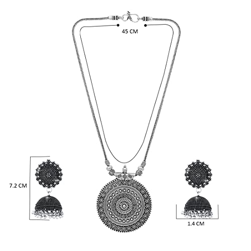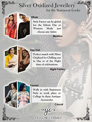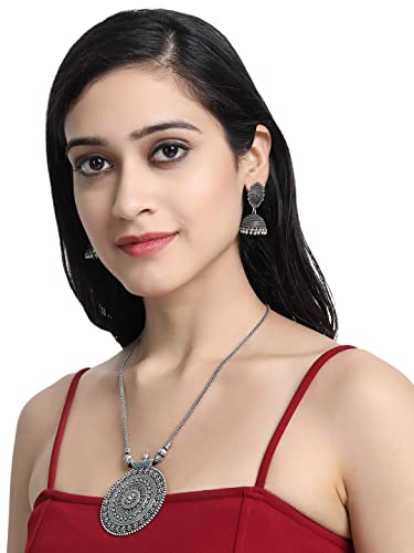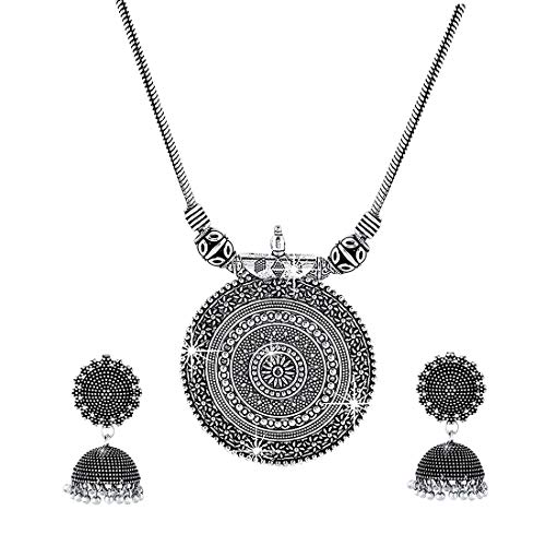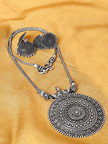 Yellow Chimes Antique Silver Oxidized Ethnic Indian Traditional Fashion Pendant Set Jewelry for Women