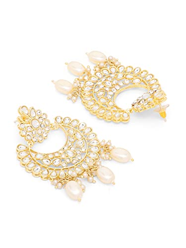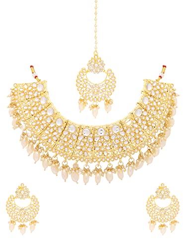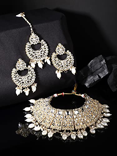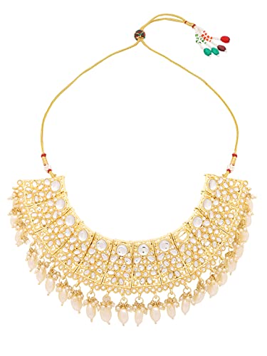 HomeFashionNecklaceYellow Chimes Jewellery Set for Women Kundan Studded Trditional White Beads Drop Broad Choker Necklace Set with Earrings for Women and Girls Free Metal No Gemstone