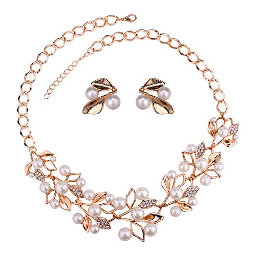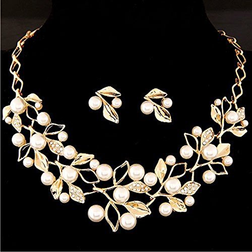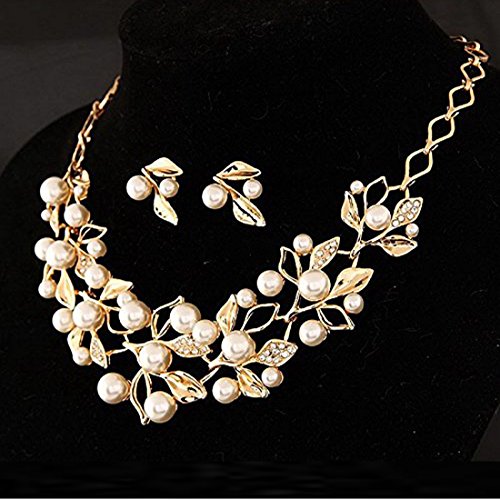 Yellow Chimes Necklace with Earrings Pearl Gold Plated Necklace Set for Women