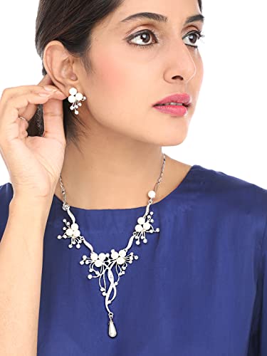 Trendy & Stylish Silver Choker Necklace Set with earrings will complement any Attire - Modern Look White A5 Grade Crystal Choker Necklace from your own Yellow Chimes. Complements all outfits & this jewelry set may be worn as a Statement Piece to any occasion. This set will definitely be a treasured inclusion in every woman's jewelery collection Beautiful Looks at One Glance- with Intricate High Polish creates Glamorous Reflections and adds Luxurious Looks