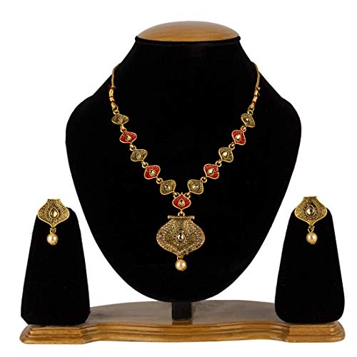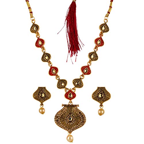 Yelow Chimes Antique Traditional Pearl Kundan German Oxidized Gold Plated Necklace with Earrings for Women