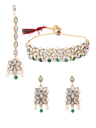 YouBella Jewellery Set for Women Gold Plated Wedding Bridal Traditional Choker Necklace Pearl Necklace Set Jewellery Set with Earrings for Girls/Women
