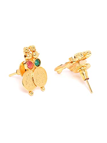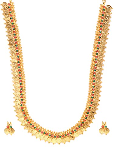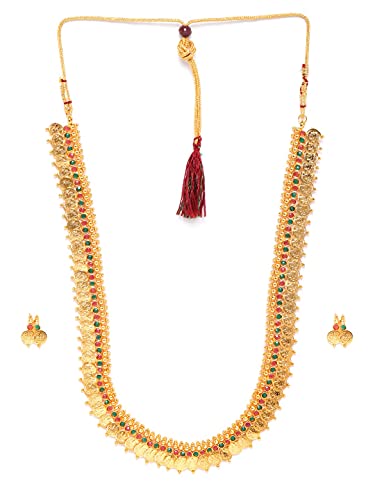 YouBella Long Maharani Red and Green Temple coin Traditional Necklace set for women Jewellery set with Earrings for Women