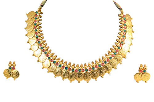 YouBella Red and Green Temple Coin Traditional Necklace Set for Women Jewellery Set for Women