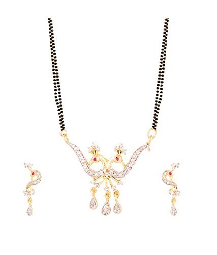 YouBella Traditional Gold Plated Mangalsutra Necklace Pendant with Chain and Earrings for Women