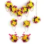 HomeFashionNecklaceZeneme Jewellery Flowers Jewellery Set For Haldi Gota Patti Necklace, Earrings, Bracelet & Maang Tika for Women & Girls ( Mehandi/Haldi/Wedding/Bridal/Baby Shower ), Standard, Paper, No Gemstone
