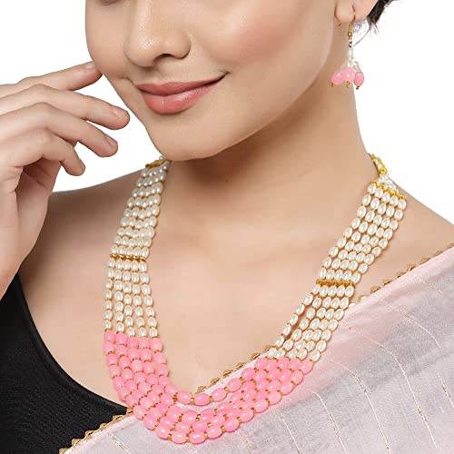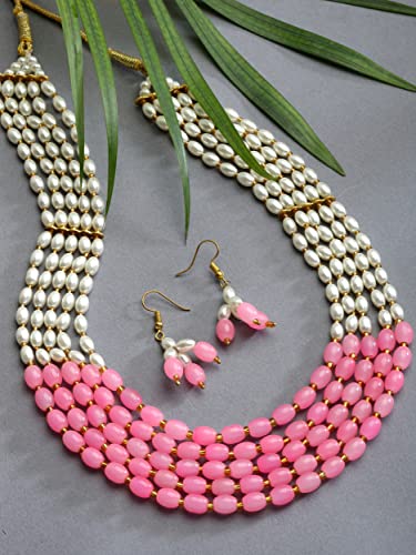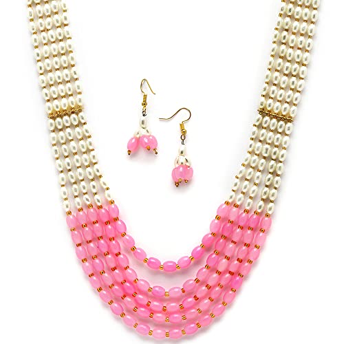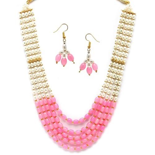 HomeFashionNecklaceZENEME Jewellery Set White Pearl Multi String Five Layered Rajasthani Style Vintage Necklace Set With Earrings Jewellery For Women & Girls
