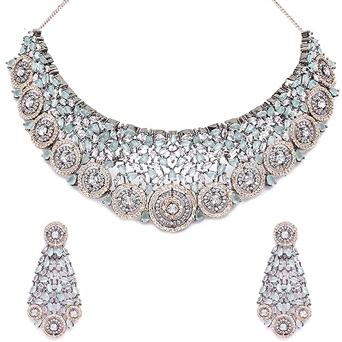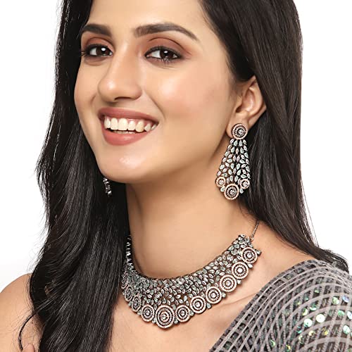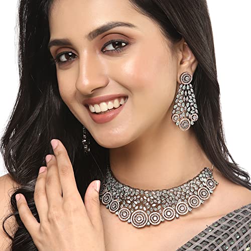 ZENEME Rhodium-ColorSilver Choker Necklace with Earrings Jewellery Set with Girls and Women