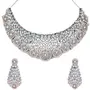 • What You Get:- This jewellery set consists of a necklace and a pair of earrings. Rhodium-ColorSilver Toned Choker Necklace has studded detail sed with a S-Hook closure. A pair of matching Drop Earrings each sed with a Post and Back Closure.