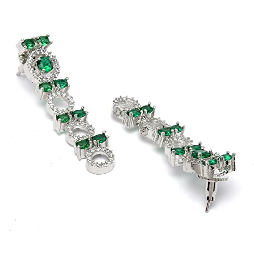 ZENEME Rhodium-ColorSilver Toned Circular Long Necklace Earring Jewellery Set for Girls and Women