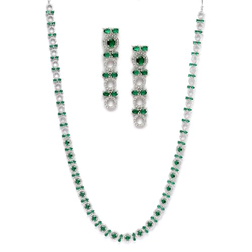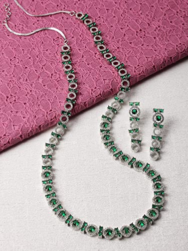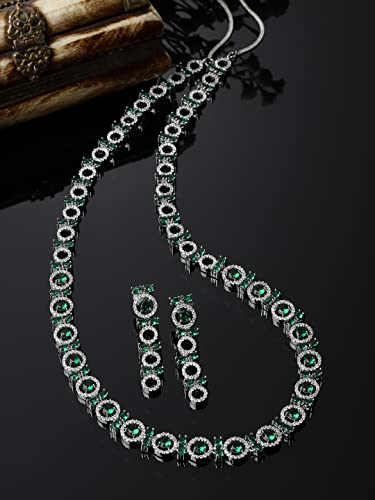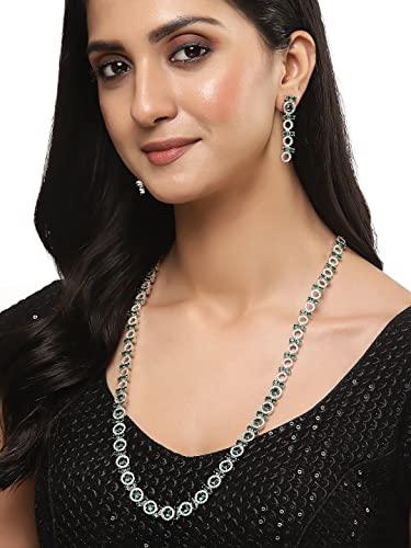 • What You Get:- This jewellery set consists of a necklace and a pair of earrings. Rhodium-ColorSilver Toned Long Necklace has Circular shaped studded detail sed with a S-Hook closure. A pair of matching Drop Earrings each sed with a Post and Back Closure.