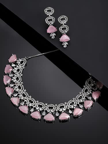 This jewellery set consists of a necklace & a pair of earrings. Rhodium-Colorwith Silver-Toned choker necklace has Red and White studded has sed with a Lobster closure. A pair of matching drop earrings each sed with a post-and-back closure. Brand:- Zeneme Collection:- Jewellery Set Colour:- Silver White and Red Base Metal:- Brass Stone Type:- Occasion:- Western Type:- Necklace and Earrings Necklace Type:- Choker Earrings Type:- Drop Earrings Necklace Closure:- Lobster Earring Closure:- Post and Back -On:- Plating:- Rhodium-ColorWhat you get:- 1 Pcs of Necklace 1 Set of Earrings Care Information:- Wipe your jewellery with a soft lint-free cloth after every use. Always store your jewellery in a fabric-lined flat box to avoid accidental scratches and loosening of stone settings. Avoid contact with hairspray perfume and cosmetics from your jewellery. Do not soak your jewellery in water avoid using gold in swimming pools.