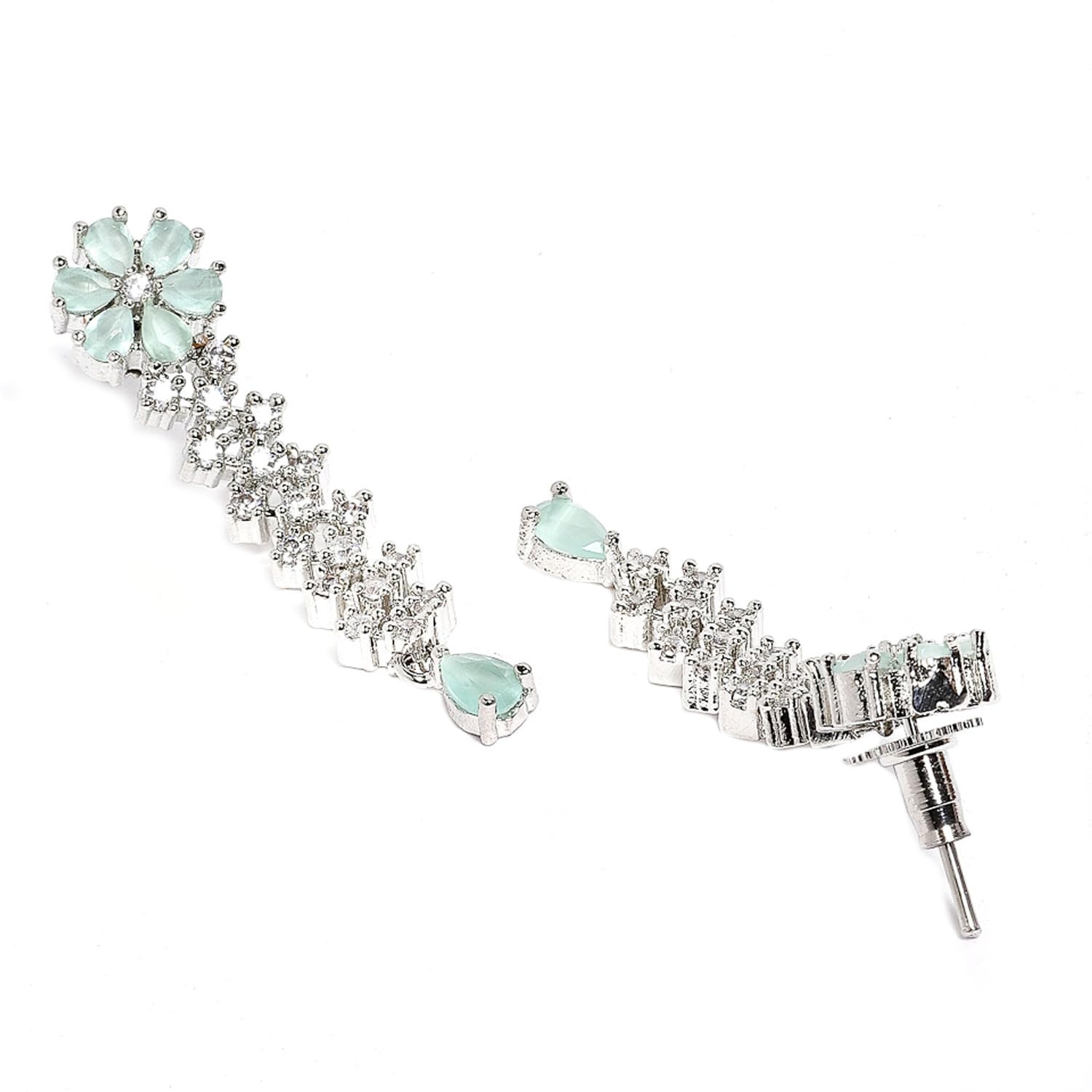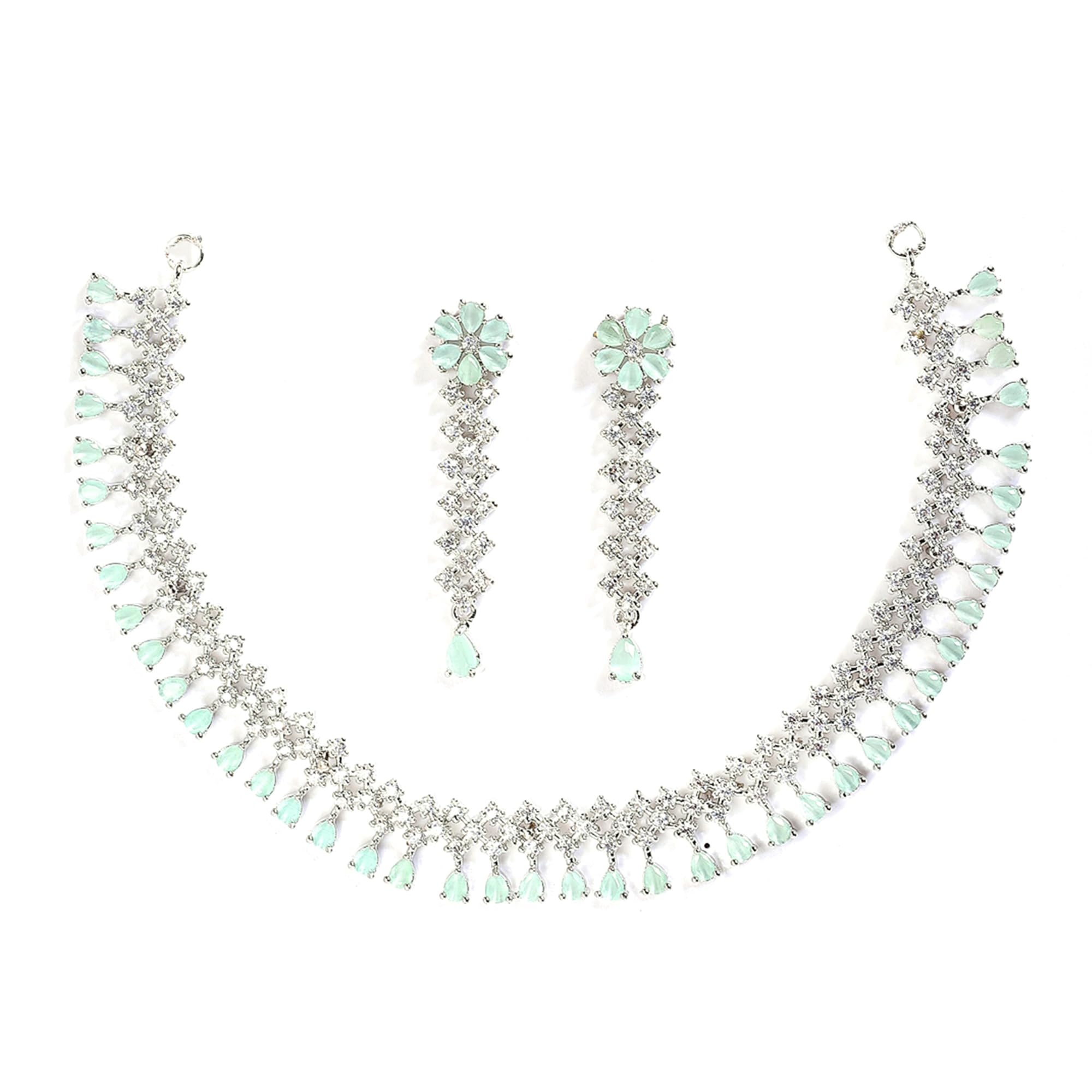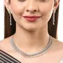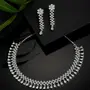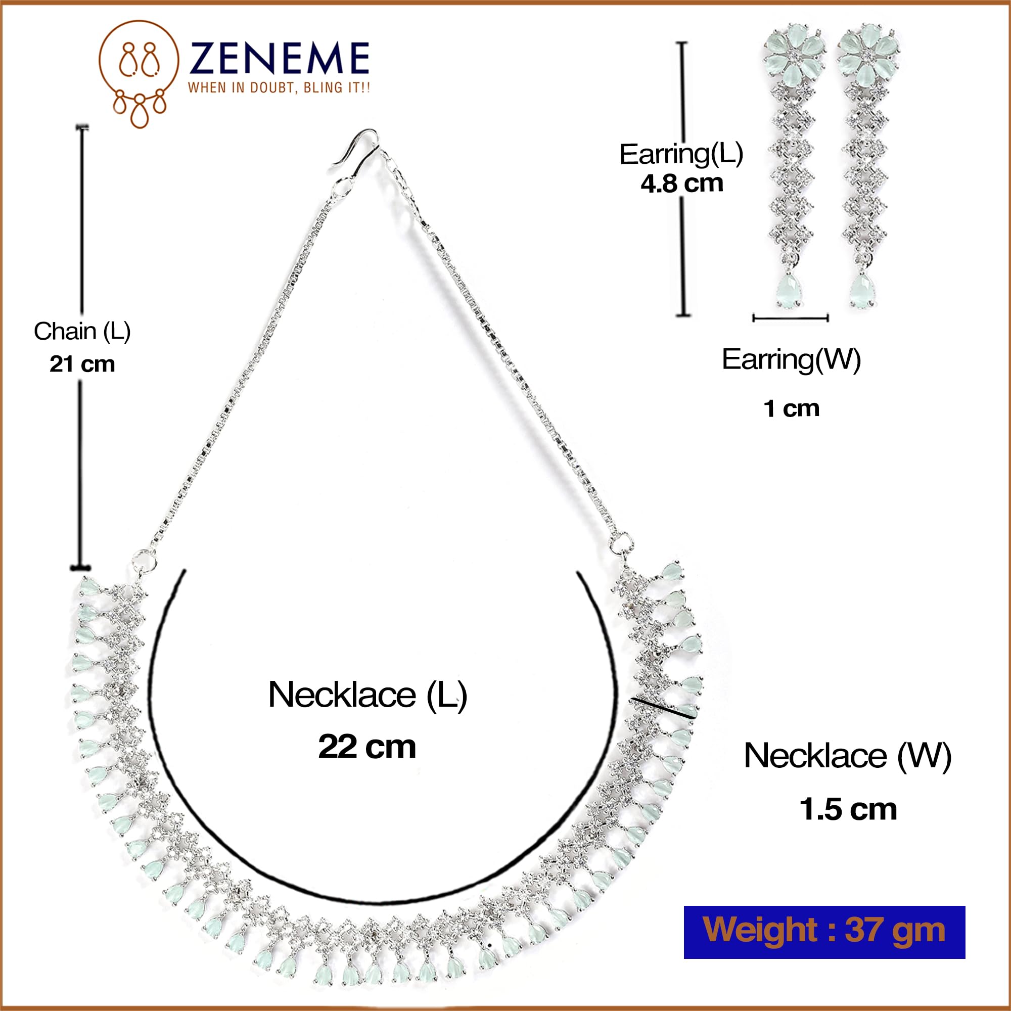 ZENEME Rhodium Plated American Diamond Studded Detail Necklace With Earring Fashion Jewellery Set For Women and Girl