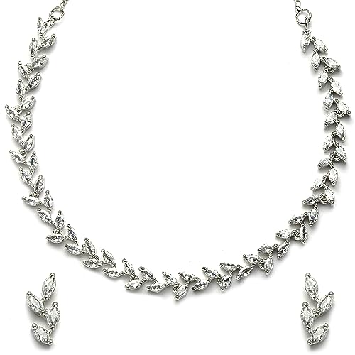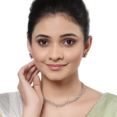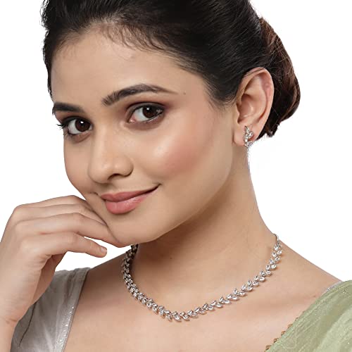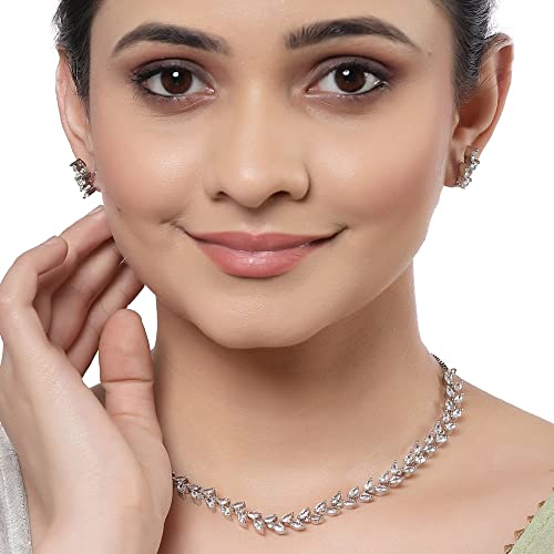 This jewellery set consists of a necklace and a pair of earrings. Rose Gold-ColorLeaf Design necklace has Rose Black and White -studded sed by Hook closure. A pair of matching drop earrings sed with a post-and-back closure. Brand:- Zeneme Collection:- Jewellery Set Colour:- Silver Rose Black and White Base Metal:- Brass Stone Type:- Occasion:- Western Type:- Necklace and Earrings Necklace Type:- Collar Earrings Type:- Drop Earrings Necklace Closure:- Hook Earring Closure:- Post and Back -On:- Plating:- Rose Gold-ColorWhat you get:- 1 Pcs of Necklace 1 Set of Earrings Care Information:- Wipe your jewellery with a soft lint-free cloth after every use. Always store your jewellery in a fabric-lined flat box to avoid accidental scratches and loosening of stone settings. Avoid contact with hairspray perfume and cosmetics from your jewellery. Do not soak your jewellery in water avoid using gold in swimming pools.