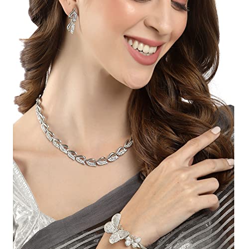 What You Get:- 1N Leaf Shaped Necklace with Matching 2N (1 Pair) Earrings & 1N Butterfly Shaped Bracelet Jewellery