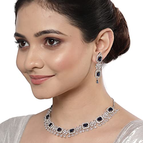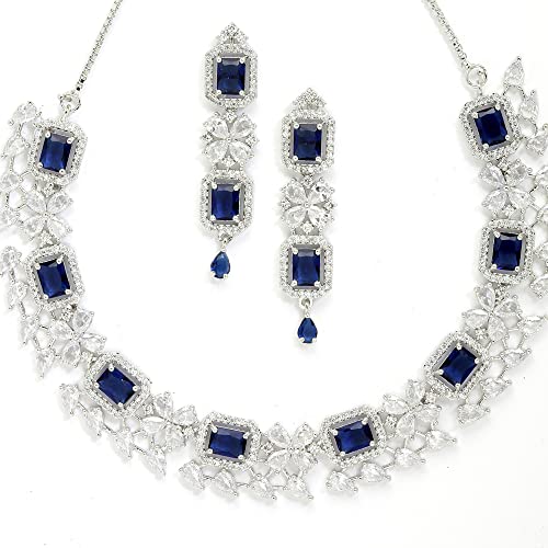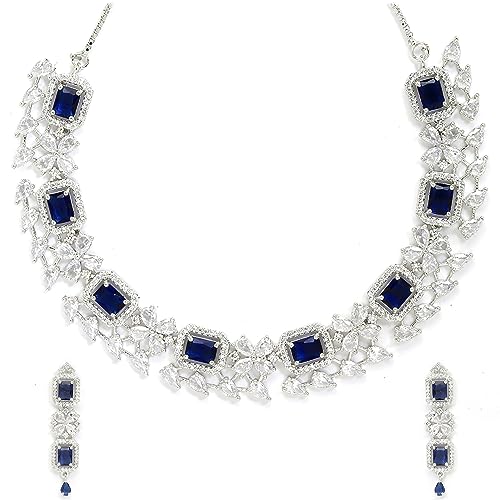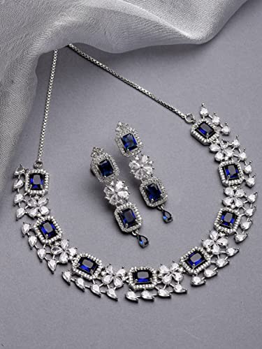 What you get : 1 N Stylish Elegant American Diamond Studded Necklace with Matching 2 N Earrings From The House Of Zeneme. ZENEME