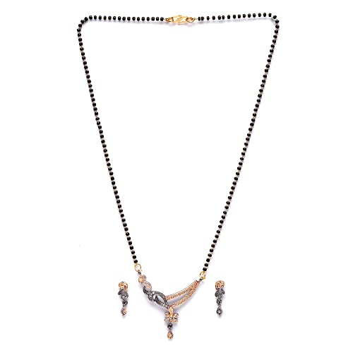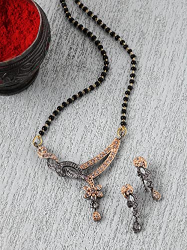 HomeFashionNecklaceZENEME Women's Rose Gold-Plated Gunmetal Toned Artificial Stones And Black Beads Studded Mangalsutra With Earrings Jewellery Set Free Size Rose Gold & Black