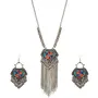 Zephyrr Jewellery Set German Silver Afghani Dangler Earrings Pendant Necklace Set